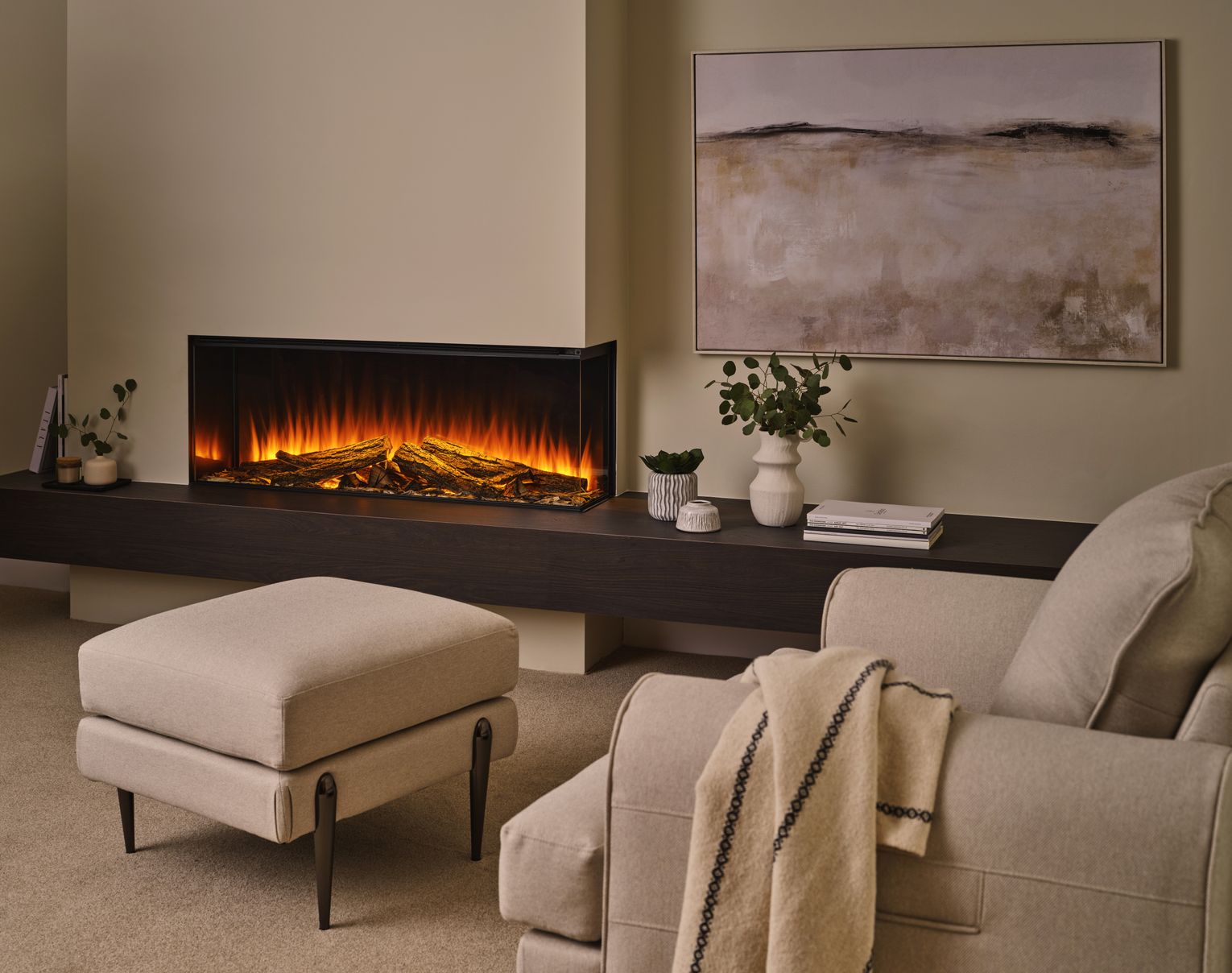 The Black Edition combines darkened glass and real hand-charred logs to create a fire that commands attention in any space.
