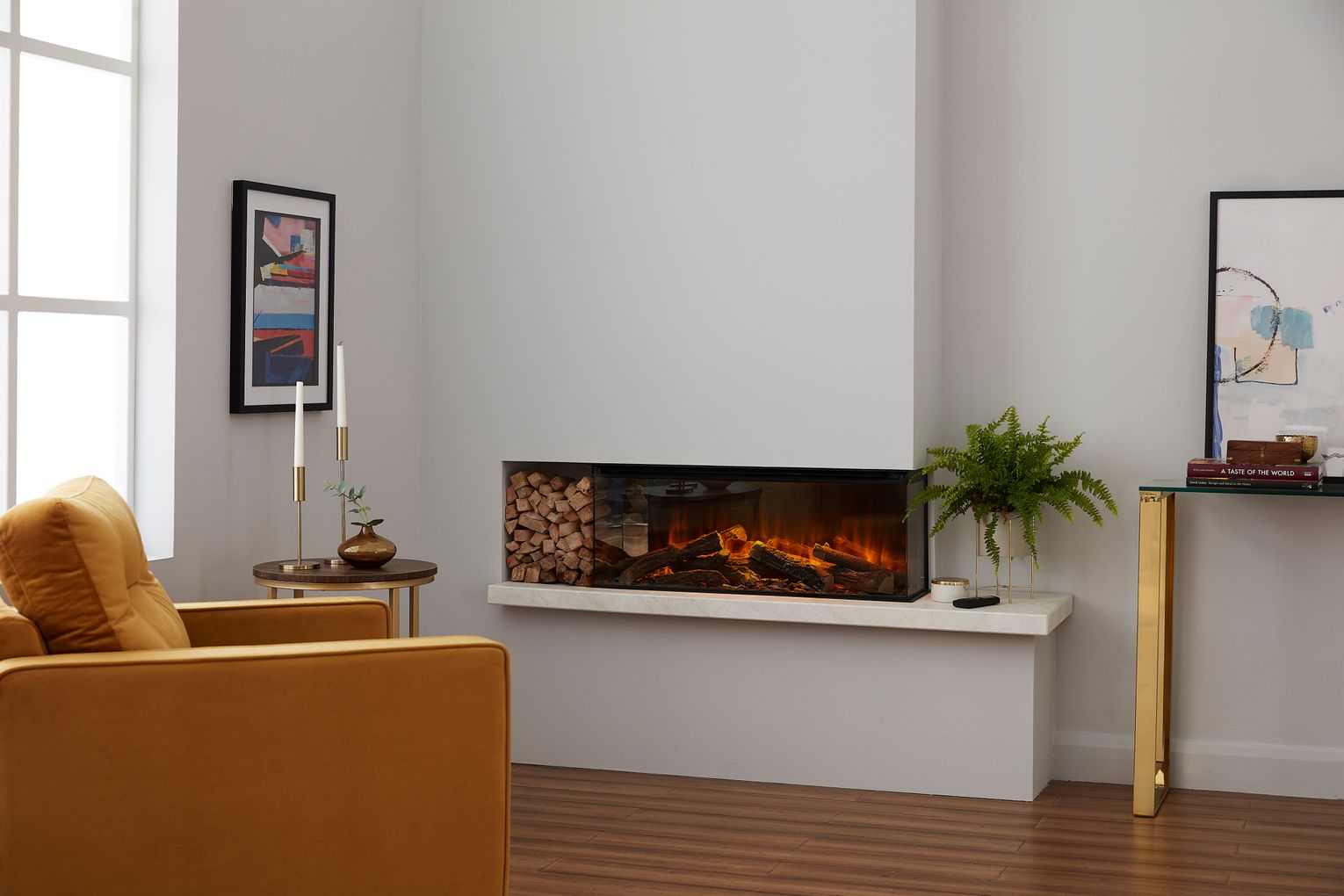 A three-sided install offers both the left and right hand sides open within a constructed chimney breast. This design offers a modern approach on a classic arrangement.