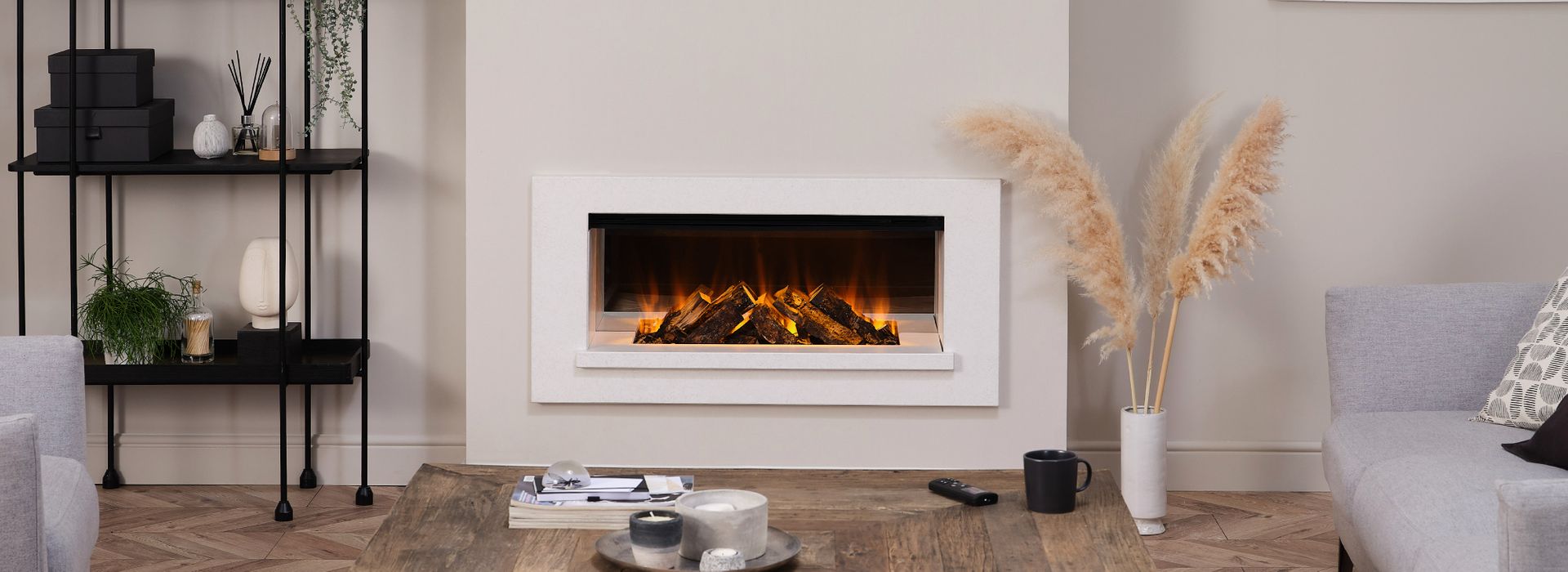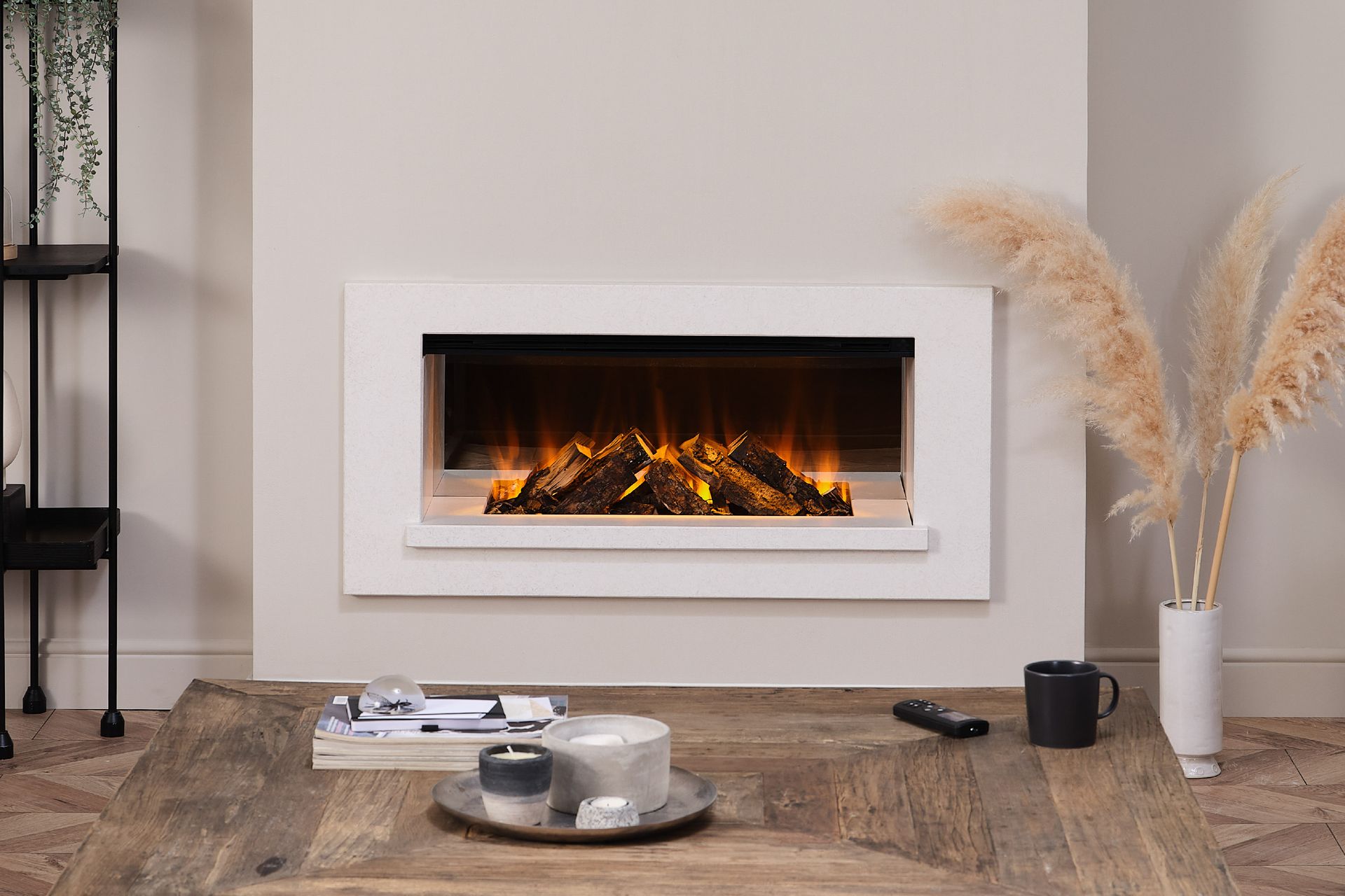 Our famous marble-effect suites are equipped with high-end air curtain technology, multiple fuel bed options and Deluxe Real Logs.