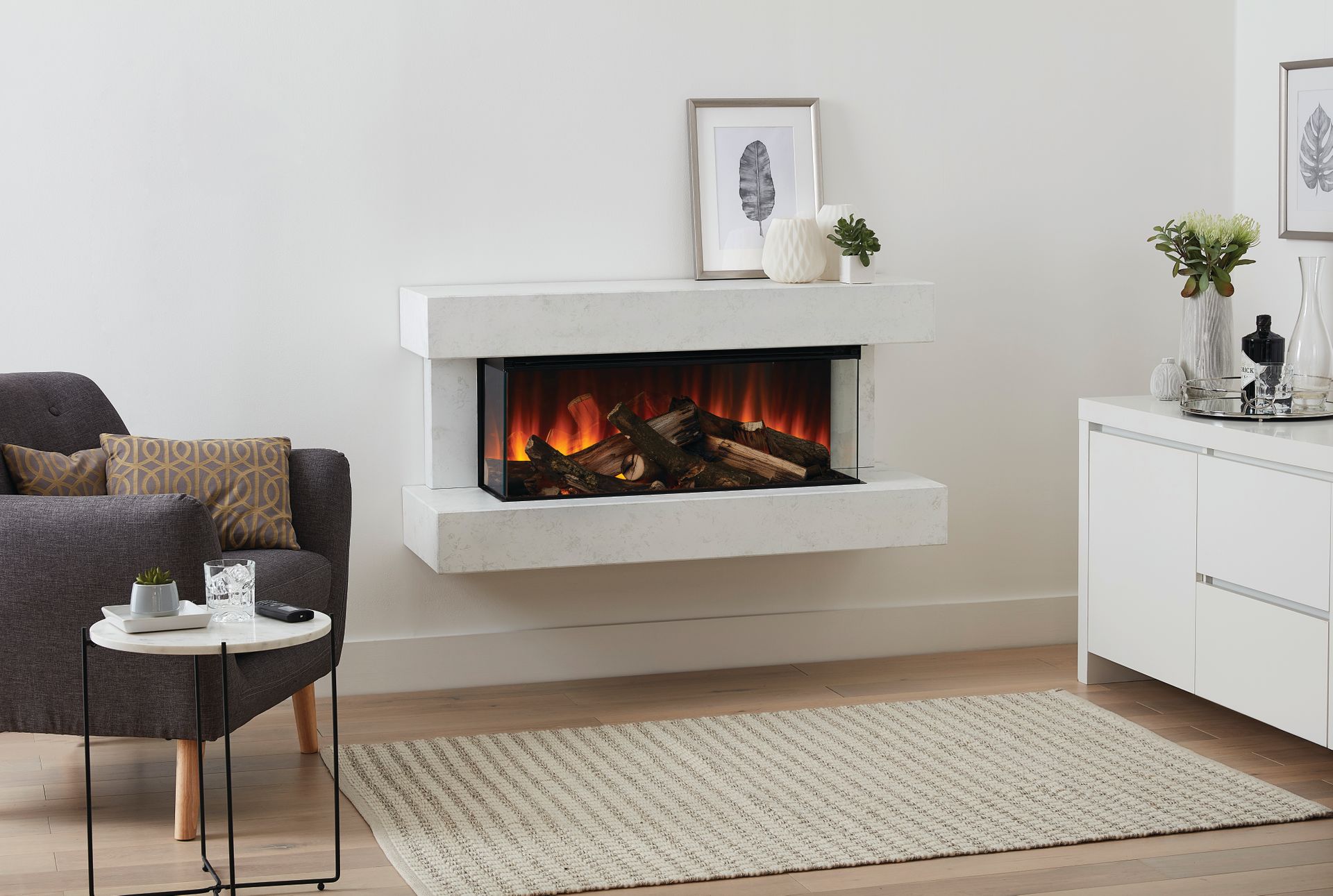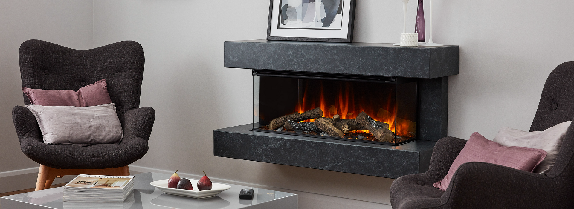 Wall mounted electric fires are a great way to make use of the wall space. These suites are not too over powering for the room and the wall mounted electric suites offer all the benefits the larger format fires do, but are easier to install.
